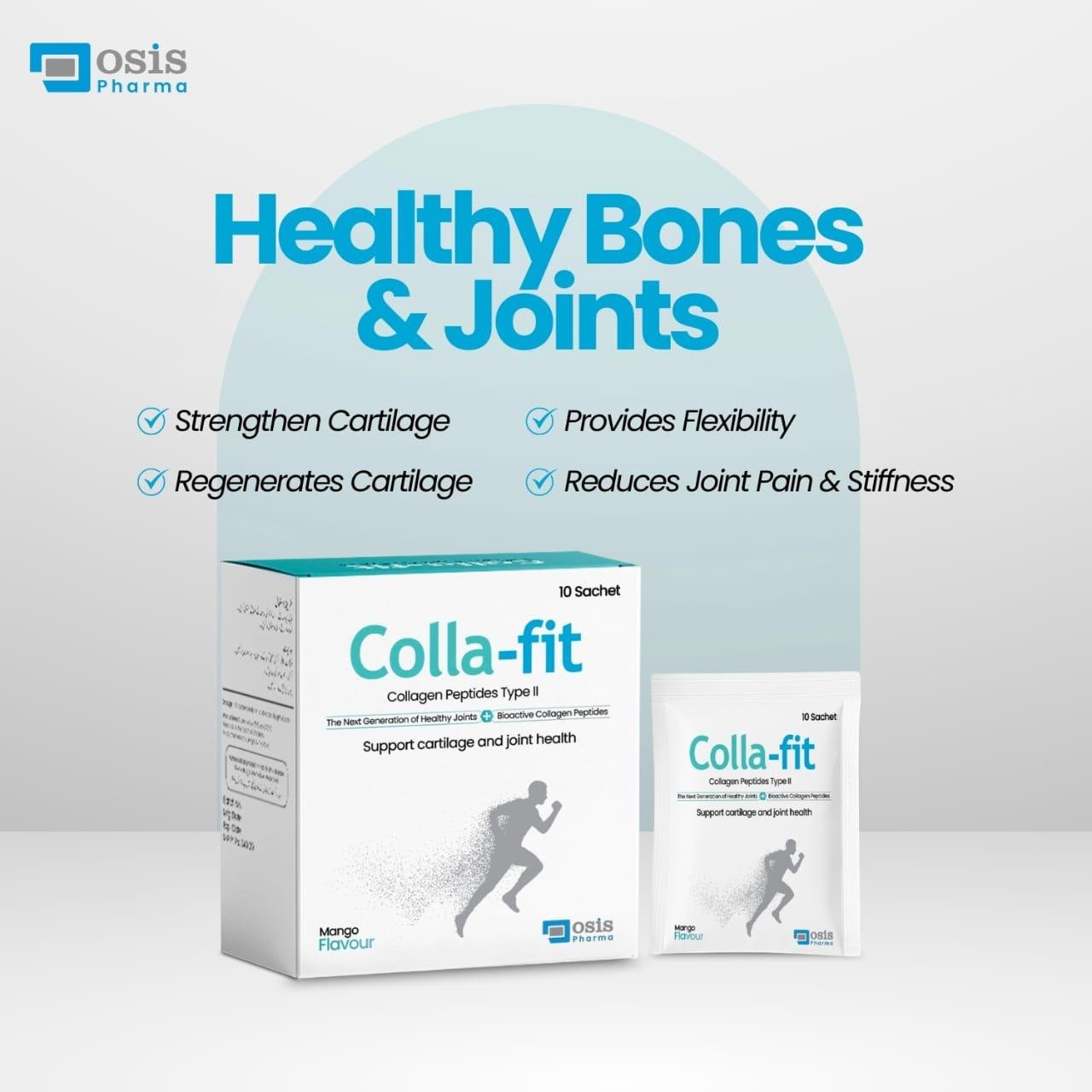 Colla-fit is a collagen supplement that supports joint health. It helps build cartilage, reduces pain, and keeps you active and moving easily.